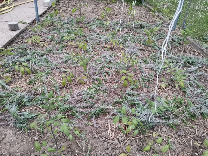 Demnächst ist Rosmarin dran und danach kommt Stroh drauf. Zwischendurch werden die Tomaten natürlich einwachsen und vom Kalkammonsalpeter profitieren (wenn es morgen tatsächlich regnen sollte) und eine Blütenrispe schieben und an die Schnüre `angeschlossen´ werden und dann geht sie los die Saison. ;)