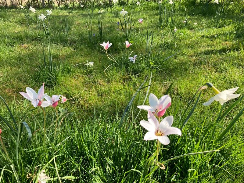 Acontraluz, drei Bilder mit Charme! Tulipa clusiana sind zauberhaft, Thalia ist mir von allen Narzissen die liebste - toll, dass beide auch in der Wiese so gut gedeihen! Das Innenhofbild ist einfach schön: Das Pflaster. Das wundervolle Tor. Die Weiden im Gegenlicht. Und der Trecker ... :D
