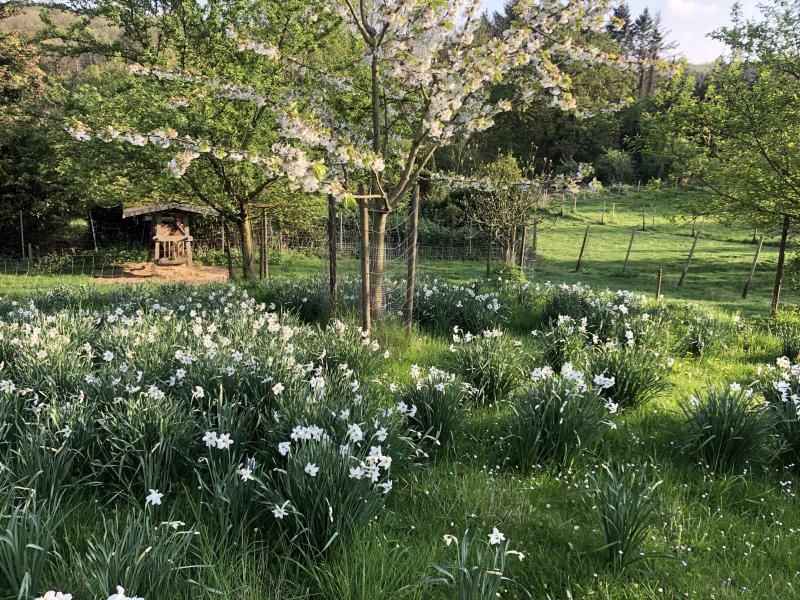 Wunderschöne Narzissenwiese, Nina :D Und Connis Obstbäume, wow :D