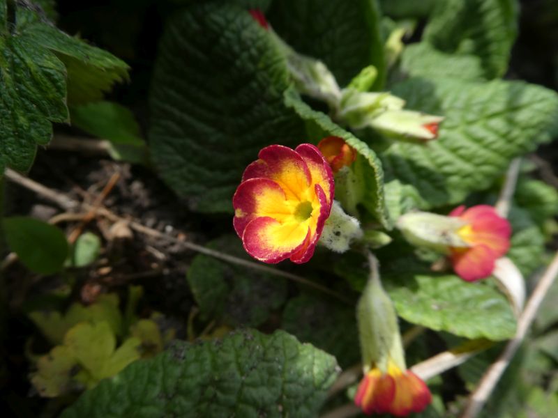 Selbst Streusandbüchse und 2 mm Regen im März halten die Primeln aus.