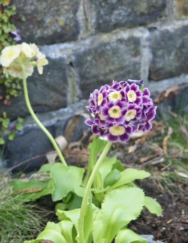 die habe ich mir aus einem etwas besser sortierten Gartencenter mitgebracht. Einfach, weil ich Primula Auricula mal in unserem Garten erproben wollte. Die wurden dort als Garten-Aurikel gekennzeichnet und haben relativ großes Laub. Gerade strahlen sie so richtig vor unserem Mäuerchen im Vorgarten. Ich bin gespannt, wie robust sie sind und ob sie im kommenden Jahr wieder blühen. Gelesen habe ich auch schon ein bisschen was über ihre Ansprüche.