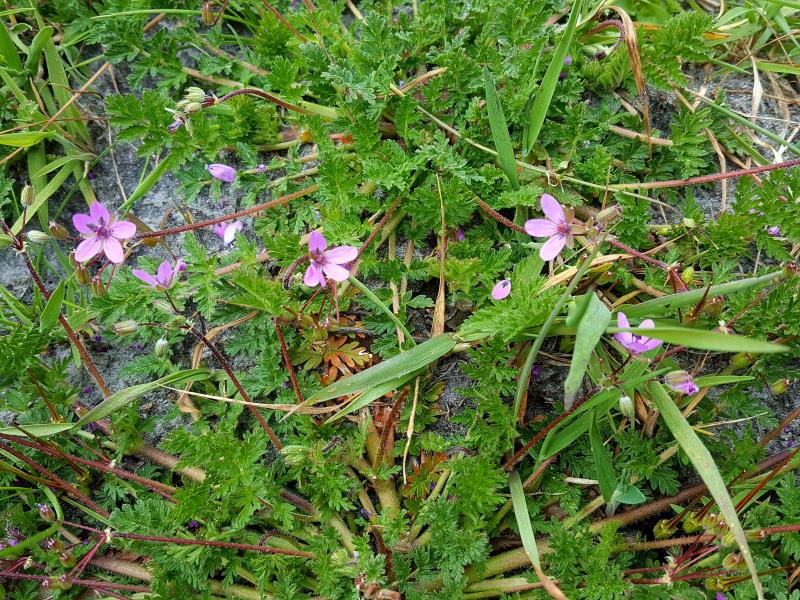 Ich denke, das ist ein Erodium (Reiherschnabel), vielleicht E. cicutarium.