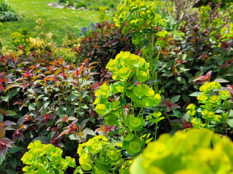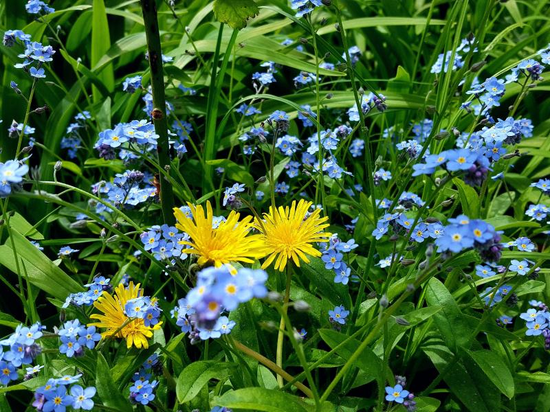 @ lerchenzorn, eine schöne und stimmungsvolle Gartenszene, die Du eben zeigst : Königin ( Tulpe `Apeldoorn Elite `), mit Hofstaat ( Gänse- blümchen / Vergißmeinnicht ) zu ihren Füßen bzw davon durchwoben, im Hintergrund ein paar andere farbenfrohe Palastbewohner.