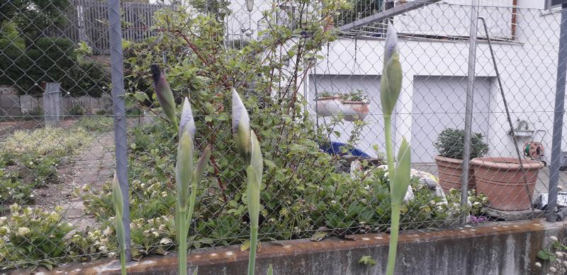 Von hier heute nur Knospen, die es hoffentlich in sich haben. Fast alle Arilbreds werden in ihren großen Töpfen blühen. Nachdem sie ihren ersten Sommer knochentrocken verbracht haben, waren sie den zweiten (letztes Jahr) der Witterung ausgesetzt, also immer wieder mal Regen. Das scheint ihnen deutlich gefallen zu haben, sind gut gewachsen und neun von zehn (oder so) schieben mindestens einen Stiel. Da ihr Substrat zu einem Gutteil aus Ackerlehm besteht, wäre der nächste Schritt dann ein Auspflanzversuch an geeigneter vorbereiteter Stelle.