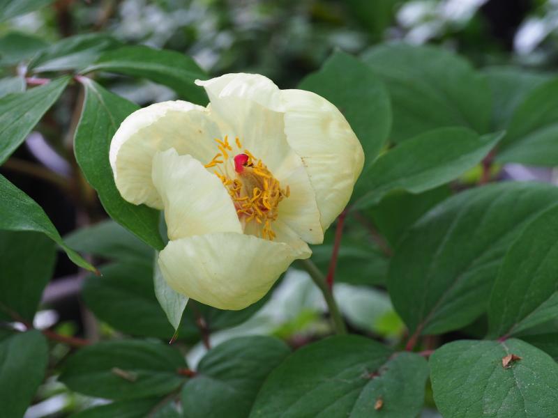 der Balkanhügel mit Paeonia tenuifolia, Iris IB 'Blackcurrant', Tulipa 'Honky Tonk', Euphorbia characias ...