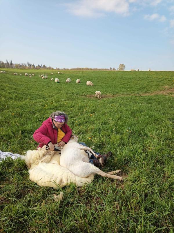 Das Schaf habe ich gestern noch geschoren. Heute mit Töchterchen 2 weitere. Die Jungzibbe von heute gebe ich ab. Man hat die mich getreten.