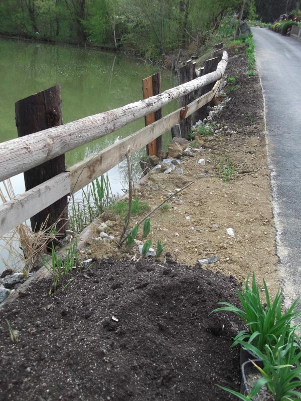 hier hatte ich im herbst alles bepflanzt, dann kam die gemeinde hatte den weg asphaltiert und meine pflanzen mit steinen zugeschüttet, ohne dass sie mich gefragt haben, gut dass sie nichtmehr da waren als ich kam, sonst hätten sie vlt einen tauchgang absolviert, nun wurde recht fette lehmerde aufgebracht und substrat aus NL habe ich bringen lassen, da möchte ich iris pflanzen, soll ich sand einarbeiten?