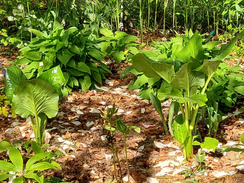 unter der Magnolie, also Schattenstauden .... Vorfreude auf die rechte, Tochterzwiebeln und Höhenwachstum ;D!