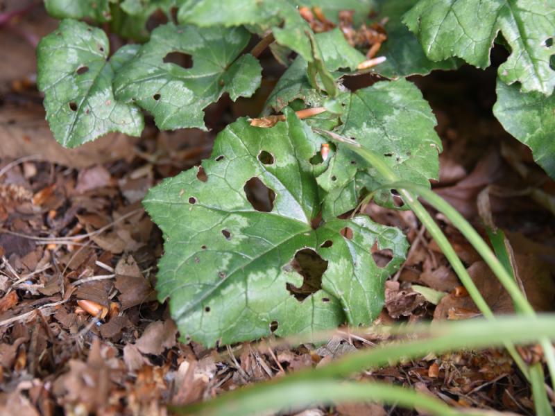 Da wir inzwischen auch vollständig auf Schneckenkorn verzichten, sind wir auf geschütztes Pflanzen oder Absammeln angewiesen. Auch Nacktschnecken bevorzugen kurze Arbeitswege. Meistens kuscheln sie in Gruppen nah am Tatort. Vorhin die frisch zerfressene 'Ideal'-Aster überprüft und fast 20 Tiere (in genau dem Stadium wie auf Walts Bild) aus dem innersten Grund der Pflanze geholt. Da, wo mich mir die Finger an den alten Stängelresten pfähle. Ich hoffe, dass das erst einmal hilft.