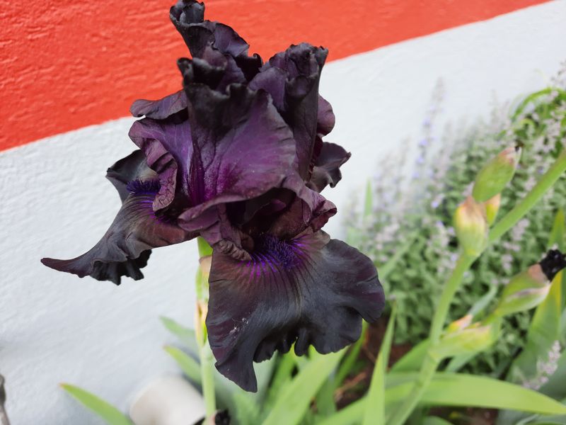 Das da, denke ich, ist "Before the Storm". In Echt ist sie schwärzer, nicht so rötlich, die Blüten haben nur moderate Größe, was mir gut gefällt und sind nur mäßig gewellt. Ich lass mich aber bez. des Namens gerne korrigieren.