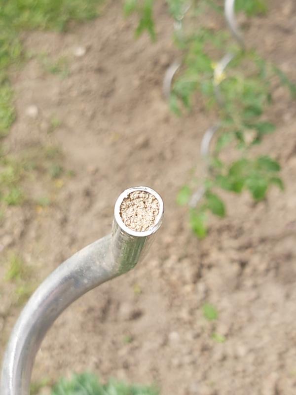 Ich hab zufällig gemerkt, dass Bienen in meinen Tomatenstangen nisten. Die Hälfte der Tomatenstangen sind schon belegt. Ich muss mal aufpassen, welche Biene dafür verantwortlich ist.