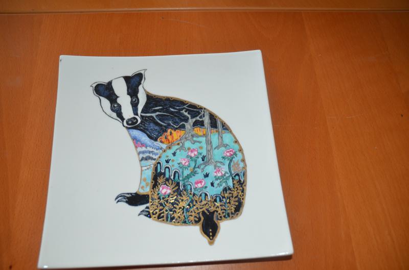 ;) und dann passierte das Malheur. Schon beim Konturenbrand knallte der Teller in 7 Stücke ::) Naja, am Besten ist zu denken: Glücklich nicht beim letzten Brand ;D ;) Was tun? Da wurde ich aufmerksam gemacht auf die Kintsugi Methode. Gut, also ausmalen und noch ein paar mal brennen. Es hat geklappt und nun zusammensetzen, ein Sprung ins kalte Wasser mit 7 Scherben, wobei der Anfang wohl 2-3 sind. Nun finde ich den Teller ganz lustig 8) ;D
