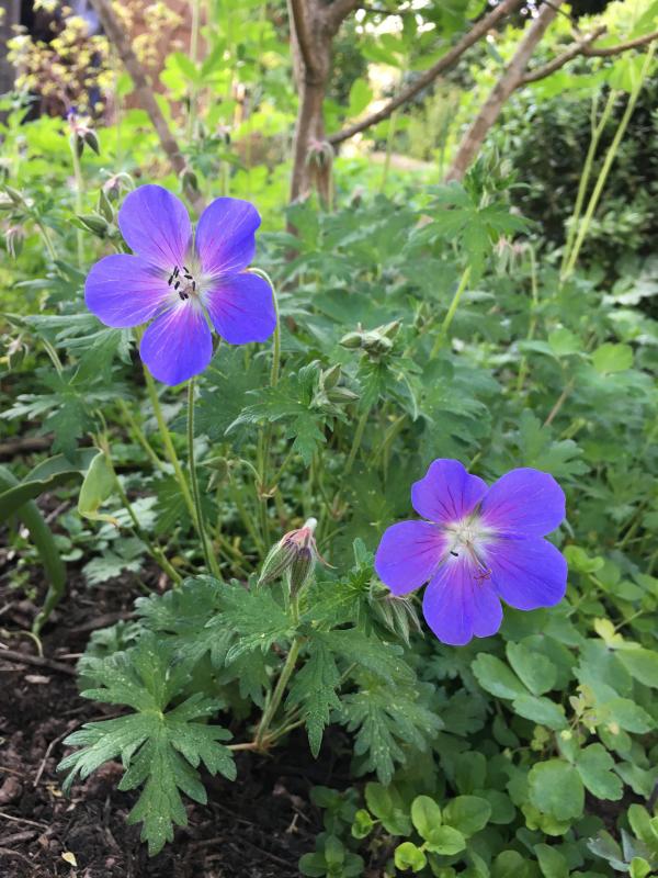 Völlig banal im Vergleich zu Euren ausgefallenen Schätzen, aber ich freue mich trotzdem über die Blüten, die im letzten Jahr aus irgendeinem Grund komplett ausgefallen sind: Geranium ‘Johnson’s Blue’.
