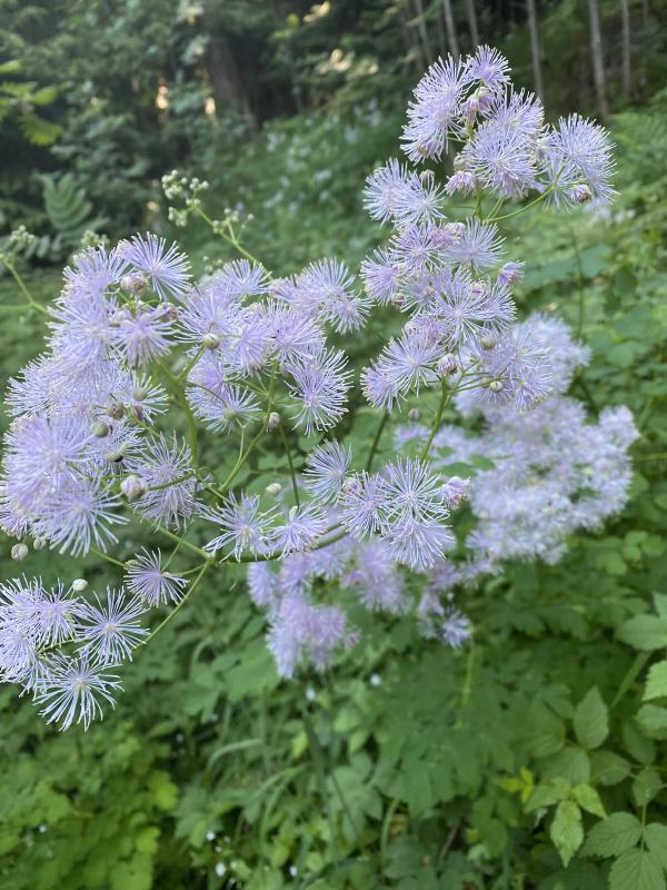 Heute beim Spaziergang im Vinschgau durch den Fichtenwald gab es einen Hang voll mit akeleiblättriger Wiesenraute (Thalictrum aquilegiifolium))