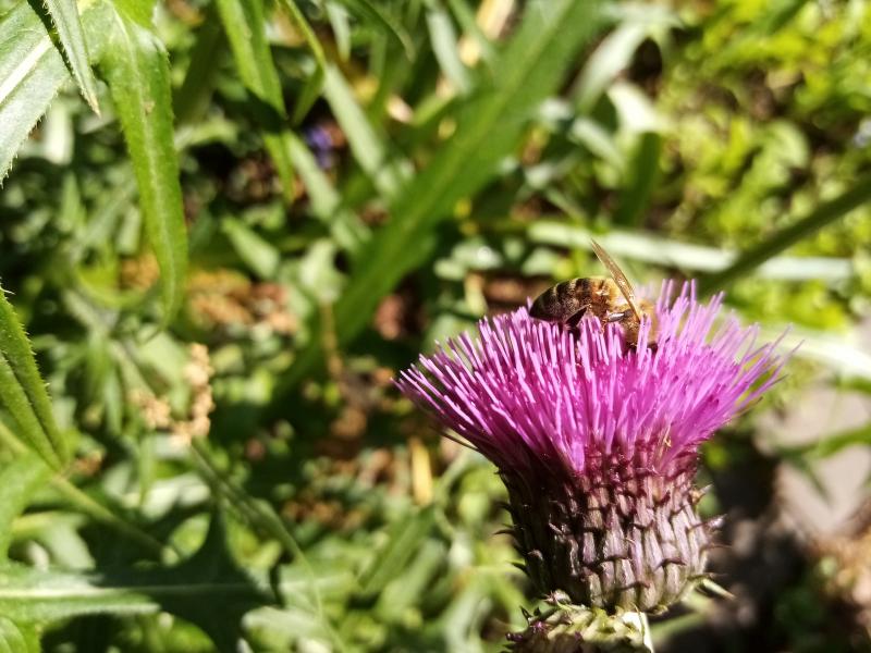 Heute ist die erste Distel aufgeblüht und direkt mit Besuch ;)