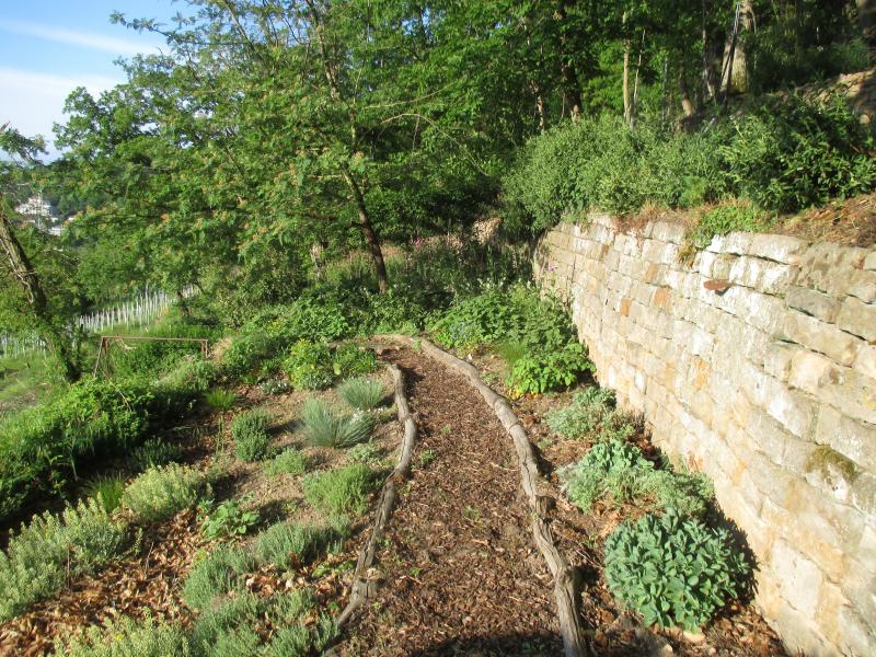 Mir gefällt das Farnbeet besonders gut. Diese schöne Mauer und der alte Baum!