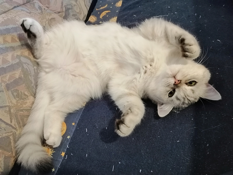Isaak geht es auch recht gut, seine Nierenwerte verharren auf einem hohen, aber stabilen Niveau. Seit Dezember hat er von 4.1 kg auf 5 kg zugelegt, beinah unglaublich, aber es macht mich sehr glücklich. Die Entzündungswerte waren letztens etwas erhöht, da vermutete die TÄ, dass er sich ein Virus eingefangen hat. Laut der Tests ist es keines der bösen 3 F's (weder FeLV, FIV noch FIP). Sein Immunsystem bekommt seit ein paar Wochen Unterstützung und dann schauen wir weiter. Er hatte gerade auch wieder zu viel Zahnstein und eine dadurch ausgelöste Entzündung, aber die ist nach Behandlung schnell abgeheilt. Also insgesamt alles sehr zufriedenstellend.