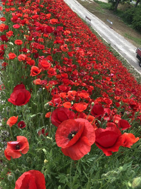 Der Rotton ist sehr intensiv, und die Blüten sind ziemlich groß. Wenn man mittendrin steht ist einfach überwältigend. Ich werde mit Sicherheit die Samen sammeln 😊