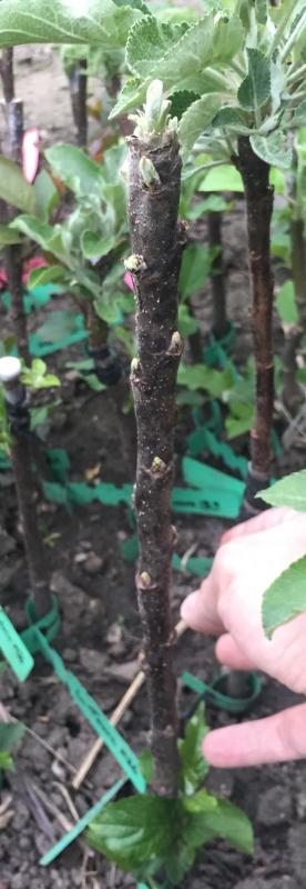 Klar am schlechtesten war Chip-Budding. Dabei ist mir aufgefallen: Wenn das Verbandmaterial auch die Knospe verbunden hat, dann gab es keinen Austrieb. Wenn sie frei gelassen wurde, dann ist es teilweise passiert. Aber wenn ich zwei Chips auf einer Unterlage angebracht habe, dann ist dennoch nur eine ausgetrieben. Durch die Spätfröste sind mir auch angetriebene Chips erfroren.
