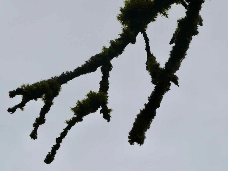 Der "flechtenartige Belag" ist nur eine Folge davon, dass das Dickenwachstum der Zweige nachgelassen hat und die Rinde nicht mehr erneuert wird. Das ist nicht die Ursache.
