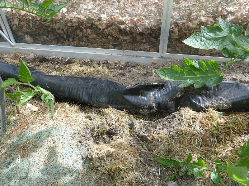 Gestern fiel mir im Gewächshaus auf, dass entlang der Wände und unter den Betasolar-Schläuchen jemand einmal rundrum gewühlt und gegraben hatte. Ich hatte erst den Dachs im Verdacht, der normalerweise für die Wühlerei in den Beeten zuständig ist.