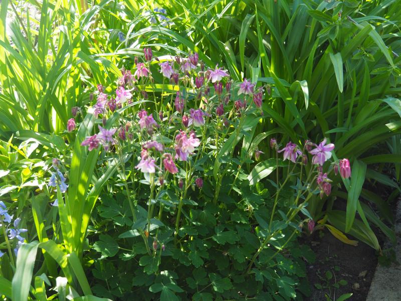 So schön kräftige Farben, wie Ihr haben wir zwar leider nicht, aber ich mag die Akeleien auch so. Hier die erste aus der hintersten Ecke, morgen will ich mal im Vorgarten nachsehen, wie weit sie dort sind.