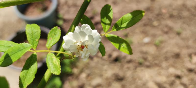 Bis ich die erste Blüte bei unserer Bibernellrose entdeckt habe, war sie fast schon wieder verblüht.