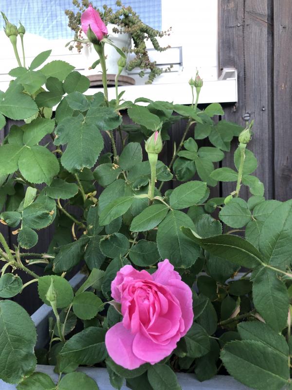 hier blüht nun zum ersten mal mme hectior leuillot, ein geschenk eines lieben rosenfreunds :-* (danke dir, jul) noch klein, aber strebt hartnäckig nach oben und hat genau