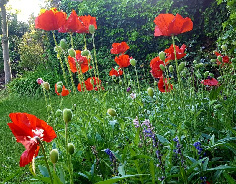 Der Rotton ist sehr intensiv, und die Blüten sind ziemlich groß. Wenn man mittendrin steht ist einfach überwältigend. Ich werde mit Sicherheit die Samen sammeln 😊