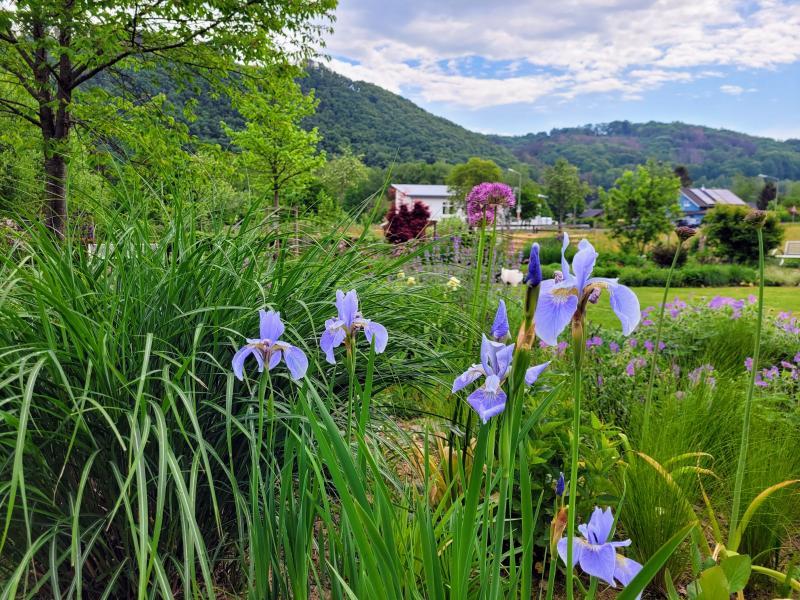 Dann blüht hier im Beet Iris sibirica 'Perry's Blue'.