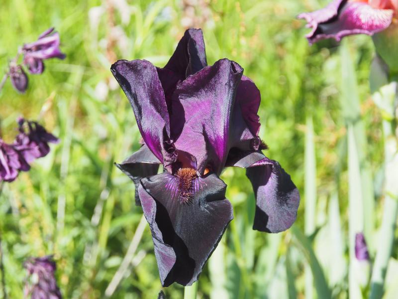 eine formlos rot blühende Aquilegia vulgaris hat mich unter den Samthortensien überrascht.