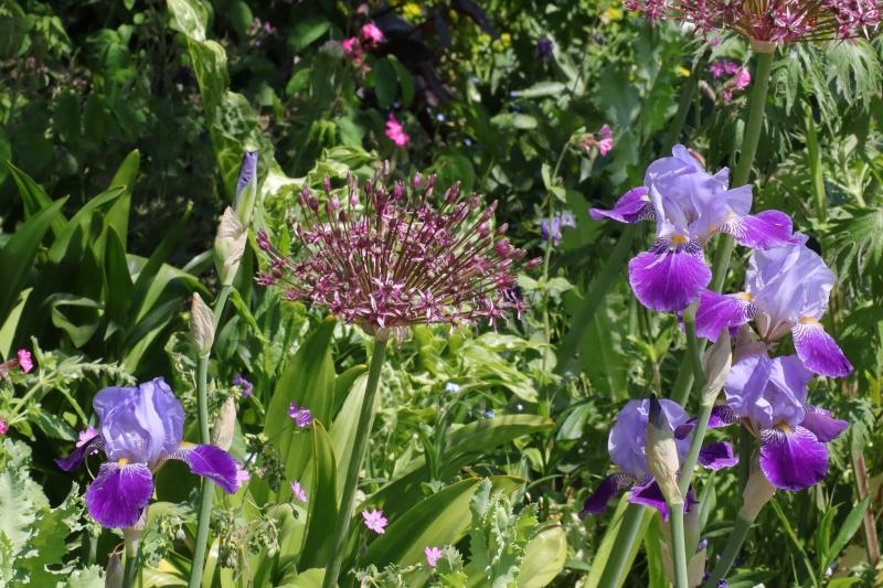 Von einem netten Purler bekam ich vor 2 Jahren einige alte Iris barbata-Sorten. Aus biographischen Gründen war mir besonders an den Rheinkindern gelegen. Diese ´Rheintraube´ soll nicht ganz echt sein, macht sich aber gut mit Allium ´Tobago´.