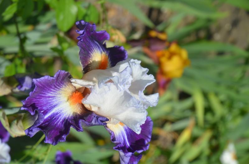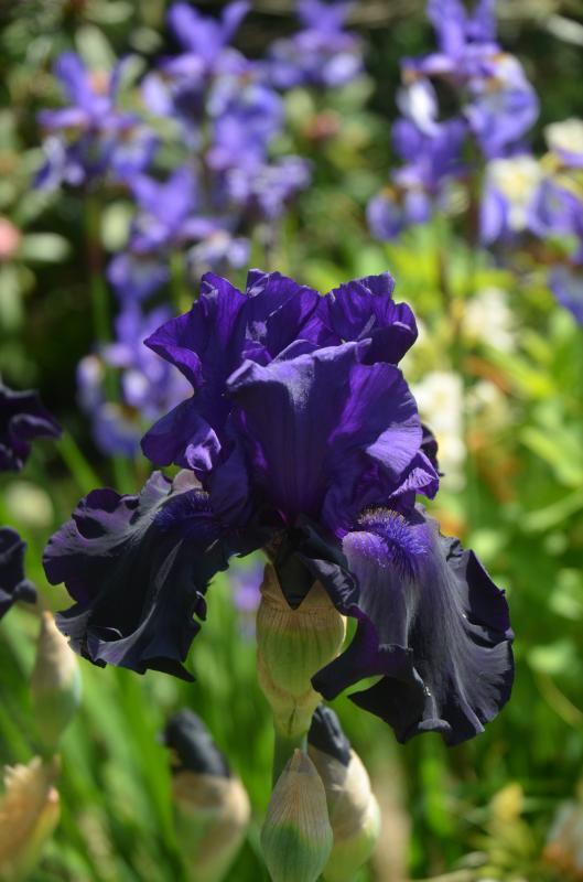 Auch mal ein Blick in die Iris-Station. In diesem Streifen wohnen Klassiker: pallida, flavescens, squalens, germanica, Burgen-/Geschwader-Iris wie Natura* und last but not least sambucina.