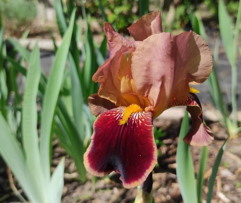 Ich versuche gerade die Irisblüten aus den Hüllblättern "raus zu gucken". Hier bei 'Fort Apache' hatte ich noch keinen Erfolg. Das Ding hat zuletzt 2013 ! geblüht. Gerade auf einem alten Bild gesehen da lagen blaue Körnchen neben der Iris. ;D