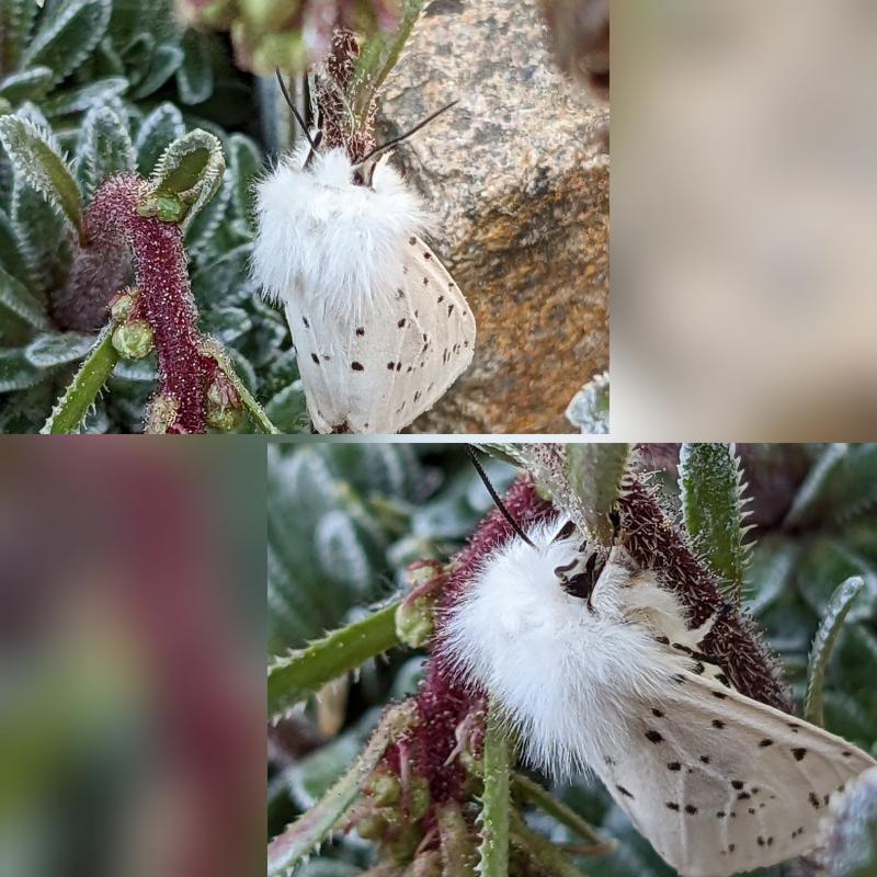 Ich habe gerade einen Weiblicher Graubär (Diaphora mendica) beim Tagschlaf gestört... sorry kleine Lady.