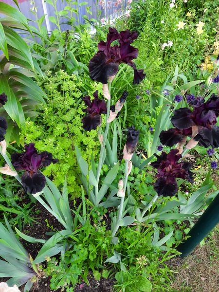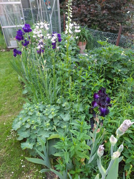 Was da im Vordergrund so dunkel glüht, ist eine meiner Lieblings-Iris, TB "Baltic Star", mit einer unglaublichen Fernwirkung.