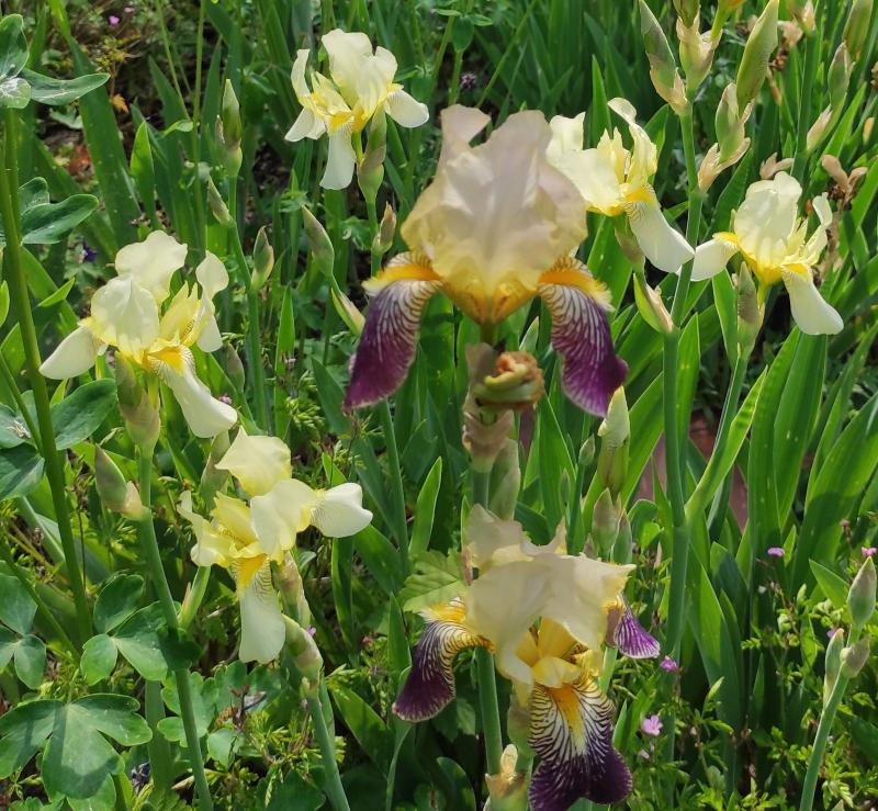 Immer wieder bin ich entzückt von der Kombination Iris squalens mit Iris flavescens. Leider etwas unscharf.