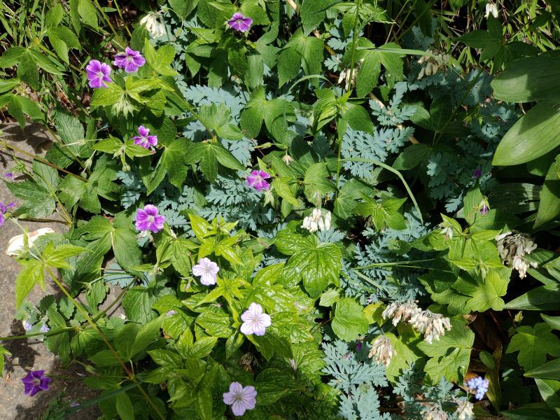 Gekauft hatte ich Dicentra 'Langtrees' und Geranium nodosum 'Svelte Lilac'. In einem der Töpfe war aber 'Clos du Coudray'. Sieht viel besser aus.