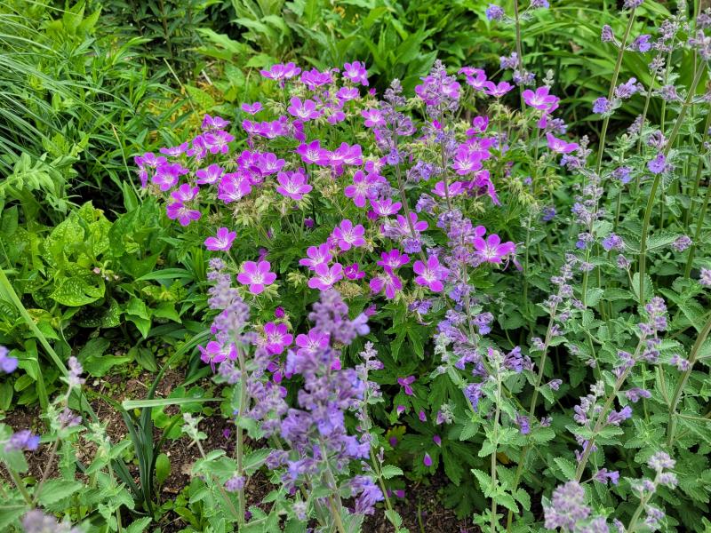 Geranium sanguineum in einer sehr flach wachsenden Sorte, die ich nicht benennen kann.