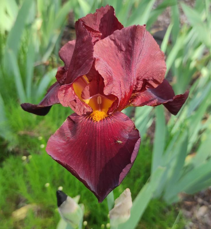 'Spring Madness' (Thomas Johnson, 2009) ist eine sehr fotogene Iris, Gersemi. Ich hatte sie 2016 schon mal blühend gezeigt hier. Leider passte sie farblich nicht so gut ins Beet und ich hatte sie damals abgegeben.