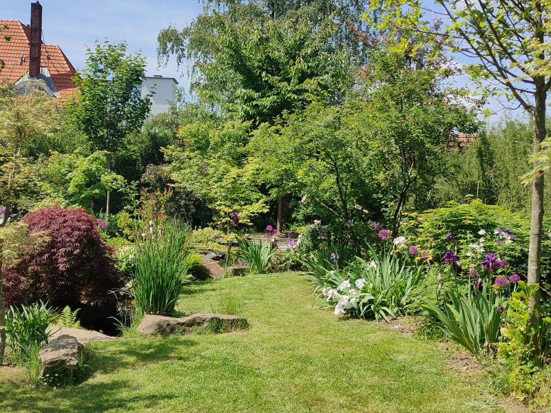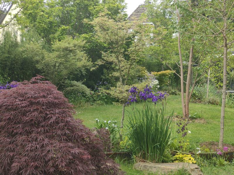 Dein Garten wirkt inzwischen richtig gut eingewachsen, Maia. Und am schönsten finde ich das Bild mit der Blickachse. Die Felsbrocken, wie sie ganz natürlich unregelmässig die Rasen-Schneise begrenzen und dazu die Bepflanzung, das hat was !