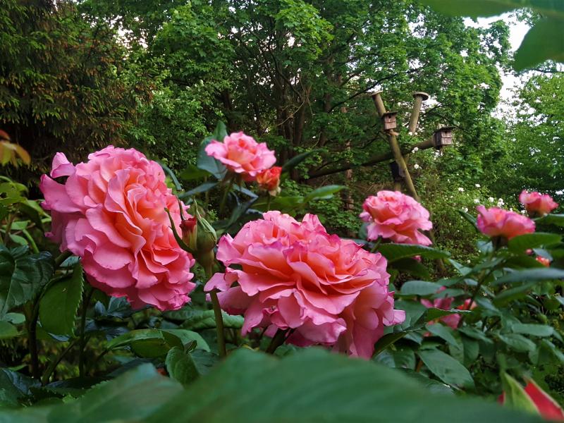 Hinter dem Gewächshaus gehen die schönen Blüten etwas unter...