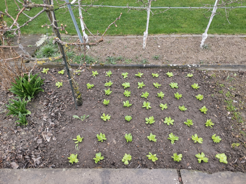 Den ersten Satz habe ich am 11.3. gepflanzt. Tags drauf gabs nochmal kurz Schnee. Macht dem Salat nichts.