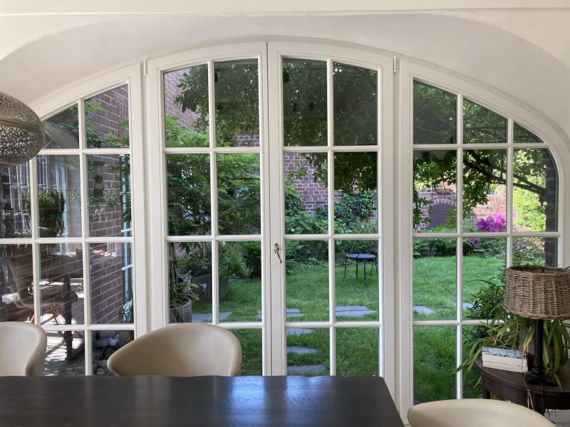 und noch einmal ein ähnliche Blick eine Etage tiefer aus dem Wohnzimmerfenster hinter dem Rosenbeet.