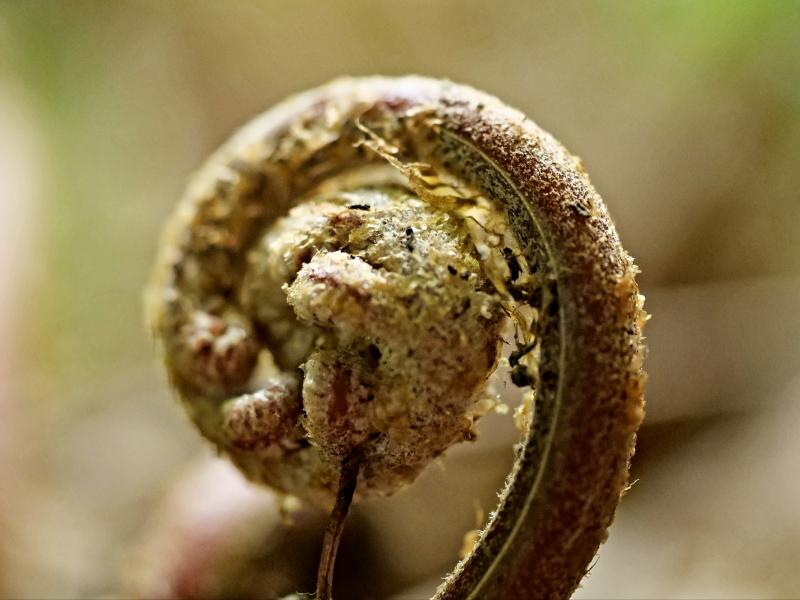 Erst jetzt beginnen sich die neuen Wedel von Woodwardia unigemmata zu entrollen.