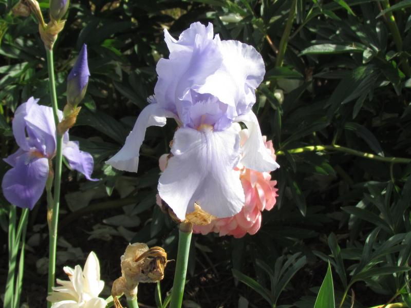 Die alte TB `Blue Sapphire´, eine der letzten noch dran hängenden Blüten. Was deswegen bemerkenswert ist, weil sie auch eine der ersten anfangenden Hohen war und ihr außerdem ein Teil der Stiele abgefroren ist.