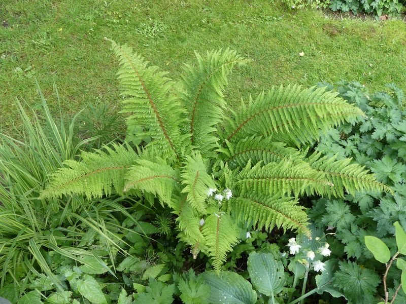 Ob das wohl 'Madame Patti' sein könnte? Den hatte ich irgendwie anders und an anderer Stelle in Erinnerung, kann aber nicht beschwören, ob ich den nicht umgepflanzt habe. Das Schild ist sehr verblichen, ich kann noch Polystichum und "Mad" erkennen.