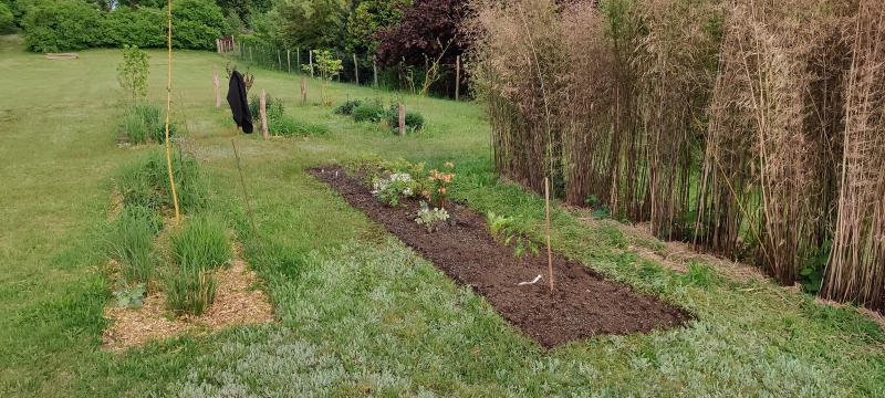 Letzte Woche war hier großes Jäten vor dem offenen Garten. Heute Nachmittag hatte ich nach Feierabend noch zwei Stündchen für den Garten und habe ein weiteres Beet im neuen Garten angelegt. Rasen gerodet, umgegraben, zwei Karren Kompost und 10 kg Bentonit eingearbeitet, dann haben die zahlreichen kleinen Strauchpäonien und einige Azaleen einen Platz gefunden.