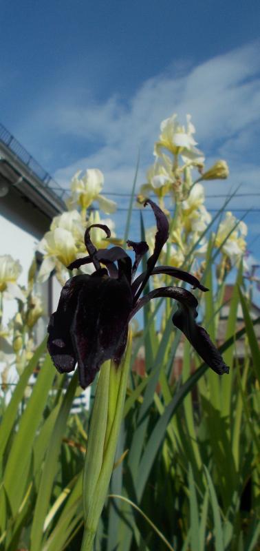 Ein Versuch, Iris chrysographes 'Black Form' und I. flavescens auf ein Bild zu kriegen :-X