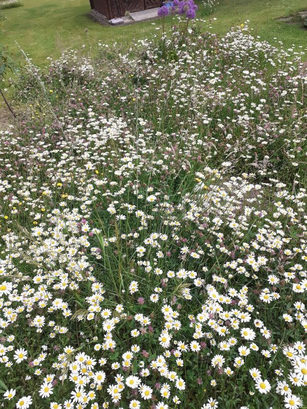 Wiesenpippau ist dieses Jahr auch bei mir deutlich weniger zahlreich als die letzten Jahre, dafür hat es lokal (2 mal etwa 5-10m²) auch wieder recht dicht Margeriten, die vorher jahrelang fast verschwunden waren oder nur in einzelnen Exemplaren zur Blüte kamen.